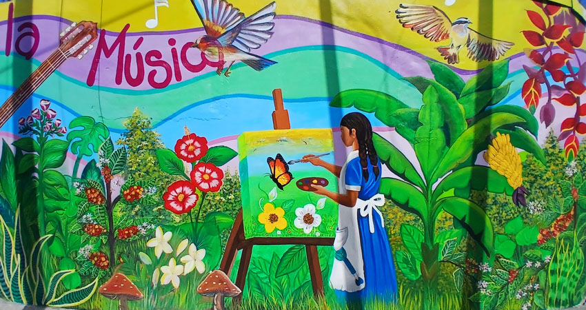 Entre paisajes, un templo y muchos colores quedó representada la silueta del Padre Gaspar García Laviana, en un mural que recientemente fue creado por estudiantes del curso regional de muralismo de la Casa de Cultura y Creatividad Ciro Molina, en la ciudad de Estelí.