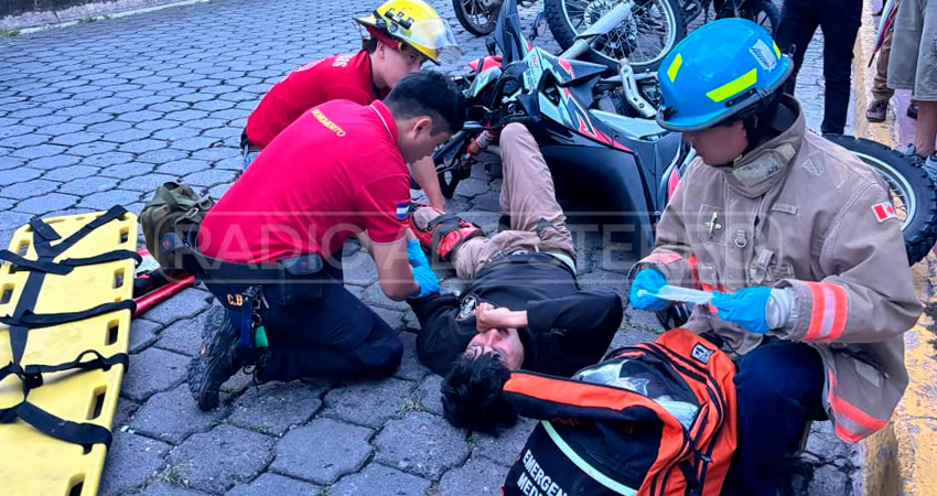 El joven Víctor Emmanuel Benavides, de 18 años, resultó lesionado la tarde de este lunes 6 de octubre, luego de impactar contra dos motocicletas que estaban estacionadas. El hecho ocurrió de los semáforos SINSA, 3 cuadras y media al oeste, en la ciudad de Estelí.